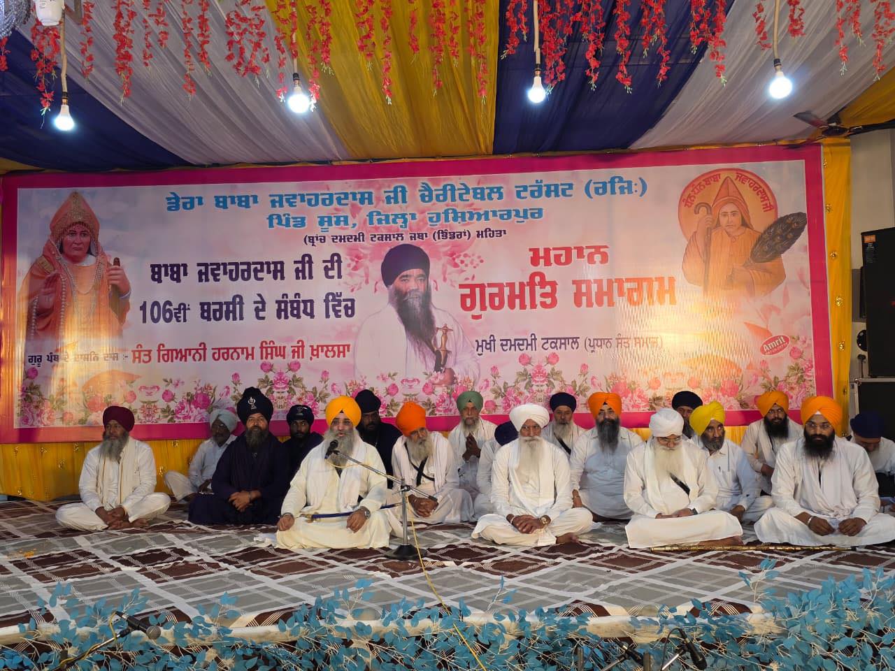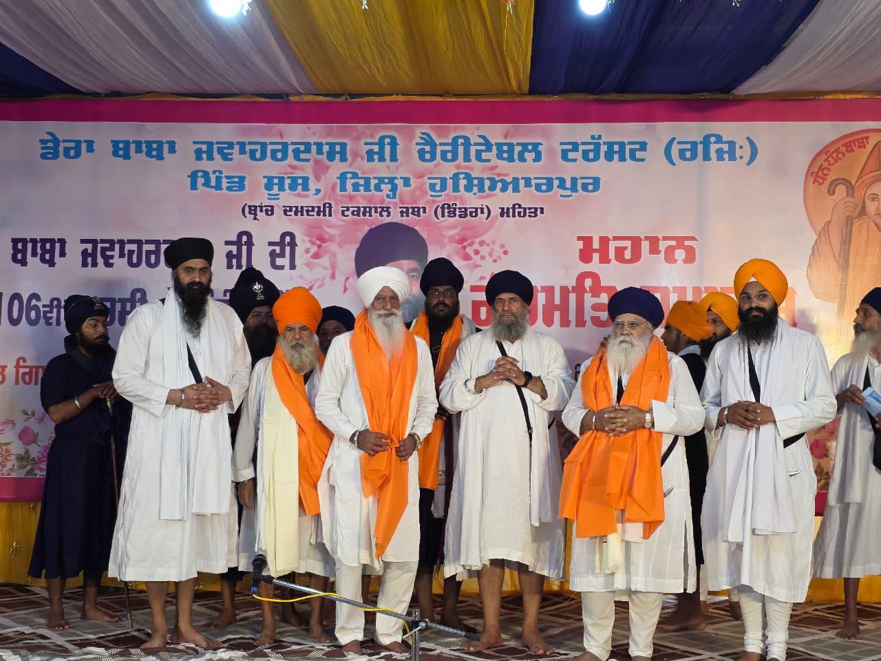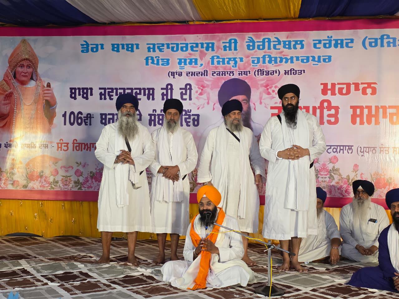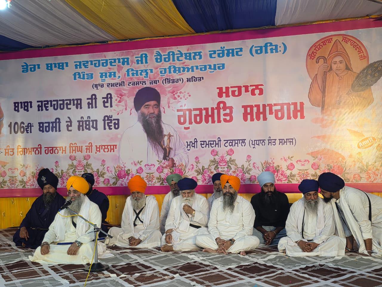 ਮਹਾਨ ਪਰਉਕਾਰੀ ਮਹਾਂਪੁਰਸ਼ ਸੰਤ ਬਾਬਾ ਜਵਾਹਰ ਦਾਸ ਜੀ ਦੀ 106ਵੀਂ ਸਾਲਾਨਾ ਬਰਸੀ ਡੇਰਾ ਬਾਬਾ ਜਵਾਹਰ ਦਾਸ ਜੀ ਚੈਰੀਟੇਬਲ ਟਰੱਸਟ ( ਰਜਿ) ਨਗਰ ਸੂਸਾਂ ਹੁਸ਼ਿਆਪੁਰ (ਬ੍ਰਾਂਚ ਜਥੇਬੰਦੀ ਦਮਦਮੀ ਟਕਸਾਲ ਜਥਾ ਭਿੰਡਰਾਂ ਮਹਿਤਾ ) ਵਿਖੇ ਮਿਤੀ 27 ਸਤੰਬਰ 2025 ਦਿਨ ਸ਼ਨੀਵਾਰ ਸਵੇਰੇ 10 ਵਜੇ ਤੋਂ ਸ਼ਾਮ 4 ਵਜੇ ਤੱਕ ਸ਼੍ਰੀਮਾਨ ਸੰਤ ਬਾਬਾ ਹਰਨਾਮ ਸਿੰਘ ਜੀ ਖਾਲਸਾ ਭਿੰਡਰਾਂਵਾਲੇ ਮੁਖੀ ਦਮਦਮੀ ਟਕਸਾਲ ਮਹਾਂਪੁਰਸ਼ਾਂ ਦੀ ਯੋਗ ਅਗੁਵਾਈ ‘ਚ ਬੜੀ ਸ਼ਰਧਾ ਭਾਵਨਾ ਅਤੇ ਚੜ੍ਹਦੀਕਲਾ ਨਾਲ ਮਨਾਈ ਗਈ ।