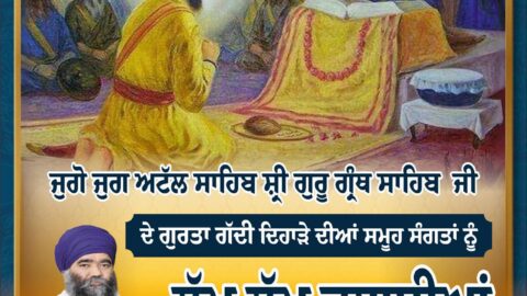 ਦਮਦਮੀ ਟਕਸਾਲ ਜਥਾ,ਭਿੰਡਰਾਂ ਮਹਿਤਾ ਵਲੋਂ ਧੰਨ ਧੰਨ ਸਾਹਿਬ ਸ਼੍ਰੀ ਗੁਰੂ ਤੇਗ ਬਹਾਦੁਰ ਸਾਹਿਬ ਜੀ ਮਹਾਰਾਜ ਦੇ ਪਾਵਨ 400 ਸਾਲਾ ਪ੍ਰਕਾਸ਼ ਪੁਰਬ ਨੂੰ ਸਮਰਪਿਤ ਕਰਵਾਏ ਜਾ ਰਹੇ ਸ਼ੁੱਧ ਪਾਠ ਬੋਧ ਸਮਾਗਮ ਦੀ ਸੰਪੂਰਨਤਾ ਦੇ ਭੋਗ ਮਿਤੀ 21 ਅਪ੍ਰੈਲ 2021 ਦਿਨ ਬੁੱਧਵਾਰ ਨੂੰ ਗੁਰਦੁਆਰਾ ਸ਼ਹੀਦ ਗੰਜ ਸਾਹਿਬ ਬਾਬਾ ਦੀਪ ਸਿੰਘ ਜੀ(ਪਹਿਲੇ ਮੁਖੀ ਦਮਦਮੀ ਟਕਸਾਲ) ਸ਼੍ਰੀ ਅੰਮ੍ਰਿਤਸਰ ਸਾਹਿਬ ਵਿਖੇ