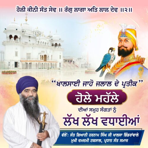 ਖਾਲਸਾ ਪੰਥ ਦੇ ਜਾਹੋ ਜਲਾਲ ਦੇ ਪ੍ਰਤੀਕ ਹੋਲੇ ਮਹੱਲੇ ਦੇ ਮਹਾਨ ਦਿਹਾੜ੍ਹੇ ਦੀਆਂ ਸਮੁੱਚੇ ਖਾਲਸਾ ਪੰਥ ਨੂੰ ਲੱਖ ਲੱਖ ਵਧਾਈਆਂ ਜੀ ।