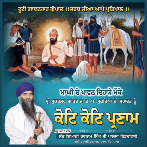 ਦਮਦਮੀ ਟਕਸਾਲ ਦੇ ਪੰਦਰਵ੍ਹੇਂ ਮੁਖੀ ਸੰਤ ਬਾਬਾ ਠਾਕੁਰ ਸਿੰਘ ਜੀ ਖਾਲਸਾ ਭਿੰਡਰਾਂਵਾਲੇ ਮੁਖੀ ਦਮਦਮੀ ਟਕਸਾਲ ਮਹਾਂਪੁਰਸ਼ਾਂ ਦੀ ਸਾਲਾਨਾ ਬਰਸੀ ਸਮਾਗਮ ਮਿਤੀ 24 ਦਸੰਬਰ 2025 ਨੂੰ ਦਮਦਮੀ ਟਕਸਾਲ ਦੇ ਮੁਖ ਅਸਥਾਨ ਗੁਰਦੁਆਰਾ ਗੁਰਦਰਸ਼ਨ ਪ੍ਰਕਾਸ਼ ਮਹਿਤਾ ਵਿਖੇ ਸੰਤ ਬਾਬਾ ਹਰਨਾਮ ਸਿੰਘ ਜੀ ਖਾਲਸਾ ਭਿੰਡਰਾਂਵਾਲੇ ਮੁਖੀ ਦਮਦਮੀ ਟਕਸਾਲ ਮਹਾਂਪੁਰਸ਼ਾਂ ਦੀ ਅਗੁਵਾਈ ‘ਚ ਮਨਾਇਆ ਜਾ ਰਿਹਾ ਹੈ ।