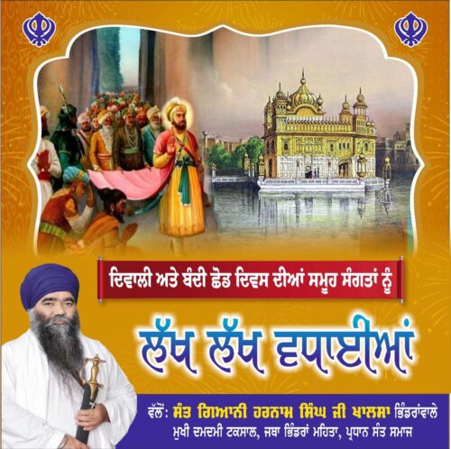 ਬੰਦੀਛੋੜ ਦਿਵਸ ਅਤੇ ਦੀਪਮਾਲਾ ( ਦੀਵਾਲੀ ) ਦੇ ਜੋੜ ਮੇਲੇ ਦੀਆਂ ਸਮੂਹ ਸੰਗਤਾਂ ਨੂੰ ਜਥੇਬੰਦੀ ਦਮਦਮੀ ਟਕਸਾਲ ਵੱਲੋਂ ਲੱਖ ਲੱਖ ਵਧਾਈਆਂ ਜੀ।