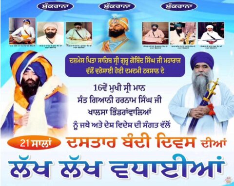 + ਦਸਮ ਪਿਤਾ ਸਾਹਿਬ ਸ਼੍ਰੀ ਗੁਰੂ ਗੋਬਿੰਦ ਸਿੰਘ ਸਾਹਿਬ ਜੀ ਮਹਾਰਾਜ ਜੀ ਵੱਲੋਂ ਆਪਣੇ ਕਰ ਕਮਲਾ ਦੁਆਰਾ ਵਰਸੋਈ ਜਥੇਬੰਦੀ ਦਮਦਮੀ ਟਕਸਾਲ ਦੇ ਵਰਤਮਾਨ 16ਵੇਂ ਮੁਖੀ ਸ਼੍ਰੀਮਾਨ ਸੰਤ ਬਾਬਾ ਹਰਨਾਮ ਸਿੰਘ ਜੀ ਖਾਲਸਾ ਭਿੰਡਰਾਂਵਾਲਿਆਂ ਦੀ ਸਮੁੱਚੇ ਦਮਦਮੀ ਟਕਸਾਲ ਜਥੇ ਵਲ਼ੋਂ ਮਿਤੀ 27 ਦਸੰਬਰ 2004 ਨੂੰ ਜਥੇਬੰਦੀ ਦੇ ਮੁਖੀ ਵਜੋਂ ਸੇਵਾਵਾਂ ਗੁਰੂ ਸਾਹਿਬ ਜੀ ਦੀ ਹਜੂਰੀ ‘ਚ ਸੇਵਾਵਾਂ ਬਖਸ਼ਿਸ ਕੀਤੀਆਂ ਗਈਆਂ ਸਨ । ਇਸ ਸਾਲ 2025 ‘ਚ ਮਹਾਂਪੁਰਸ਼ਾਂ ਦੀ ਦਸਤਾਰਬੰਦੀ ਨੂੰ 21 ਸਾਲਾ ਹੋਣ ਤੇ, ਜਥੇਬੰਦੀ ਵੱਲੋਂ ਗੁਰੂ ਸਾਹਿਬ ਜੀ ਦਾ ਕੋਟਿਨ ਕੋਟਿ ਸ਼ੁਕਰਾਨਾ ਅਤੇ ਮਹਾਂਪੁਰਸ਼ਾਂ ਨੂੰ ਦਸਤਾਰਬੰਦੀ ਦੀਆਂ ਲੱਖ ਲੱਖ ਵਧਾਈਆਂ ਹੋਣ ਜੀ Damdami Taksal, December 29, 2025December 29, 2025, Events & Updates, 0