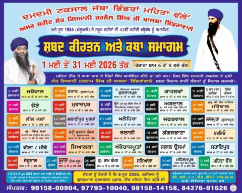 Damdami Taksal, , Events & Updates, 0ਦਮਦਮੀ ਟਕਸਾਲ (ਜਥਾ ਭਿੰਡਰਾਂ ਮਹਿਤਾ) ਦੀ ਬ੍ਰਾਂਚ, ਗੁ: ਬਾਬੇ ਸ਼ਹੀਦਾਂ,ਨਗਰ ਸਰਮਸਤਪੁਰ ਜਿਲ੍ਹਾ ( ਜਲੰਧਰ) ਵਿਖੇ, ਸਮੂਹ ਸ਼ਹੀਦਾਂ ਸਿੰਘਾਂ ਦੀ ਯਾਦ ‘ਚ, ਸਾਲਾਨਾ ਜੋੜ ਮੇਲਾ, ਮਿਤੀ 28-29 ਮਾਰਚ 2026 ਨੂੰ ,ਸ਼੍ਰੀਮਾਨ ਸੰਤ ਬਾਬਾ ਹਰਨਾਮ ਸਿੰਘ ਜੀ ਖਾਲਸਾ ਭਿੰਡਰਾਂਵਾਲੇ ਮੁਖੀ ਦਮਦਮੀ ਟਕਸਾਲ ਪ੍ਰਧਾਨ ਸੰਤ ਸਮਾਜ ਮਹਾਂਪੁਰਸ਼ਾਂ ਦੀ ਅਗਵਾਈ ‘ਚ ਕਰਵਾਇਆ ਜਾ ਰਿਹਾ ਹੈ । ਸਮੂਹ ਸੰਗਤਾਂ ਨੂੰ ਬੇਨਤੀ ਹੈ ਇਹਨਾਂ ਸਮਾਗਮਾਂ ‘ਚ ਹਾਜਰੀਆਂ ਭਰੋ ਅਤੇ ਸ਼ਹੀਦਾਂ ਦੀਆਂ ਖੁਸ਼ੀਆਂ ਪ੍ਰਾਪਤ ਕਰੋ ਜੀ । ਨੋਟ :- ਮਿਤੀ 27 ਮਾਰਚ 2026 ਨੂੰ ਬਹੁਤ ਭਾਰੀ ਮਹਾਨ ਨਗਰ ਕੀਰਤਨ ਸਜਾਏ ਜਾਣਗੇ ਸਮੂਹ ਸੰਗਤਾਂ ਨੂੰ ਬੇਨਤੀ ਹੈ ਨਗਰ ਕੀਰਤਨ ‘ਚ ਵੀ ਹਾਜਰੀਆਂ ਭਰੋ ਜੀ